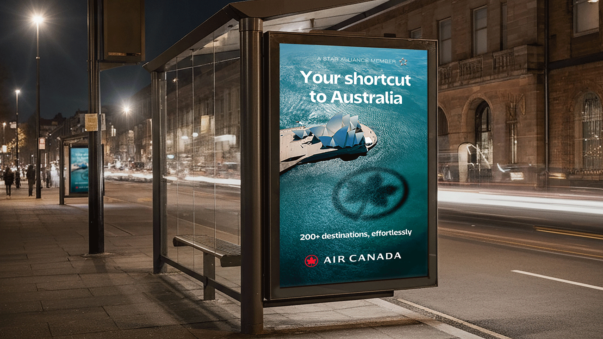 We tackled this perception head-on with striking visuals featuring the iconic Air Canada roundel hovering above some of the world’s most recognizable landmarks from Paris to Tokyo, symbolizing the brand’s worldwide reach and inviting travelers to see Air Canada as their link to over 180 destinations around the globe.